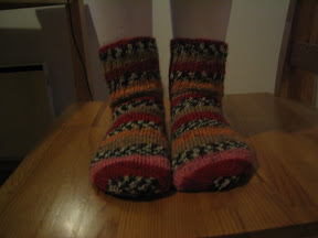 Sain aikaiseksi toisetkin sukat sadon aikana, joten tavoitteeni taitaa olla täynnä.. Kolmannet on puikoilla, mutta saa nähdä valmistuvatko sadon aikana... Lapsi sai kuitenkin nyt sukat, joita voi tutkailla blogistani tarkemmin.